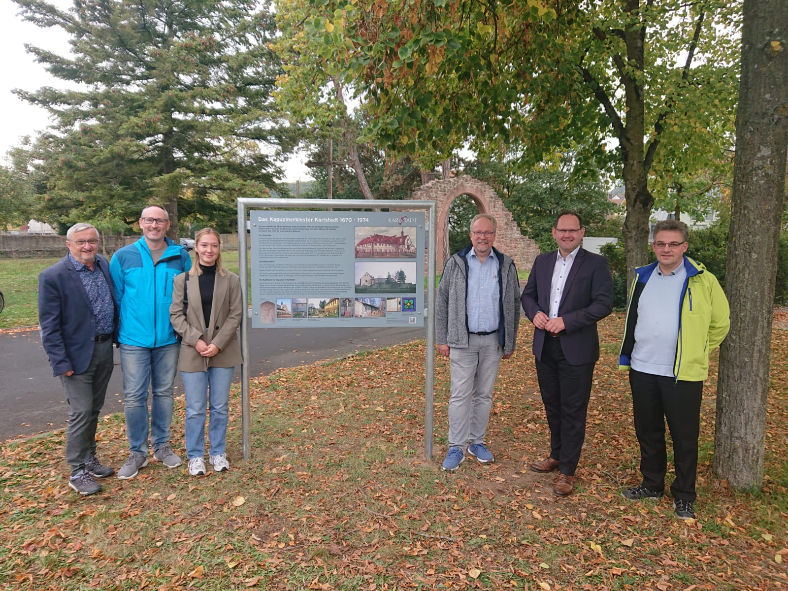 Von 1670 bis 1974 stand in Karlstadt ein Kapuzinerkloster. Daran erinnert nun eine neue Infotafel, die vom P-Seminar des Johann-Schöner-Gymnasiums seit dem Schuljahr 2021/22 erarbeitet wurde. Sie steht gegenüber dem neuen Rathaus unweit des schon vor Jahrzehnten wiederaufgebauten Eingangstorbogens und Holzkreuzes aus der Klosterkirche. Der stellvertr. Vorsitzende des Vereins, Wolfgang Merklein,hat die Tafeln grafisch konzipiert hat.
